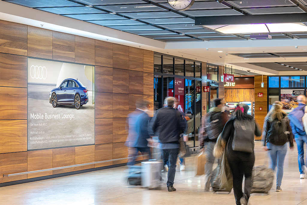 Werbeflächen an den Gates bieten eine einzigartige Gelegenheit für Unternehmen, eine diverse und oft kaufkräftige Zielgruppe zu erreichen. Durch die hohe Verweildauer der Passagiere ist die Werbewirkung unserer Landscapeflächen am Mainpier entlang der Gates besonders hoch. Die insgesamt sechzehn Werbeflächen befinden sich strategisch positioniert entlang der Wegeführung sowohl ankommender als auch abfliegender Passagiere.