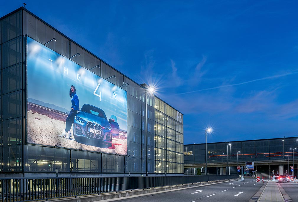 Mit diesem Riesenposter am Parkhaus P3 ist Ihre Kampagne von der Vorfahrt und dem Check-in Bereich sichtbar und erreicht abfliegende und ankommende Passagiere, sowie Meeter & Greeter.