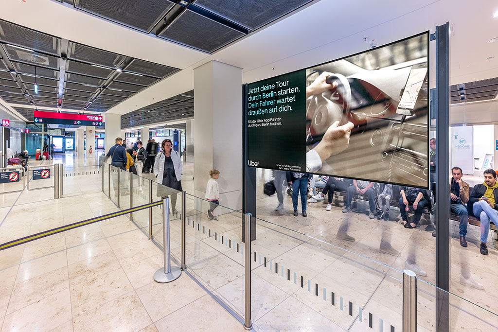 Die hinterleuchteten Werbeflächen direkt an den beiden Ausgängen der Gepäckausgabe des Terminal 1 ziehen durch ihre Sichthöhe die Aufmerksamkeit der Passanten auf sich und sorgen so für eine hohe Werbewirksamkeit. Diese alleinstehend platzierte Werbung erreicht Ihre Zielgruppe als Erstes im öffentlichen Bereich.