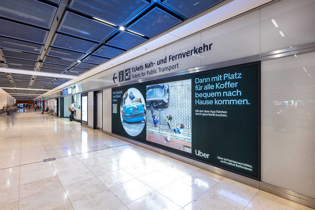 The two wide-format landscape areas are located opposite the baggage carousels and seating areas for arriving passengers - one in the north and one in the south baggage carousel area. By occupying both advertising spaces, you can reach all arriving passengers in Terminal 1.