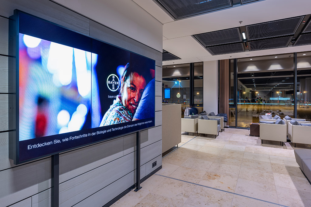 Present your message on digital advertising space at two locations in the exclusive setting of the 900-sqm Tempelhof Lounge at BER, using a custom-designed promotion point. Here you can reach both Schengen and non-Schengen passengers.