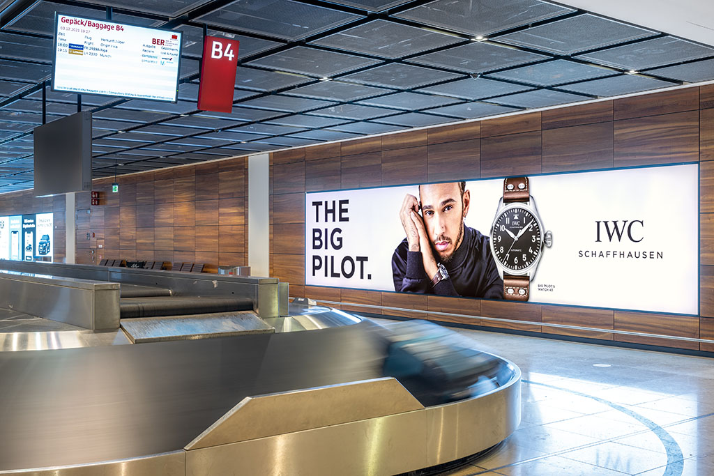 Baggage claim advertising spaces provide a unique opportunity as they capture the undivided attention of travelers. By specifically placing advertising on one of our eight landscape areas in XL format directly behind the baggage carousels, target groups can be effectively addressed and brand presence increased.