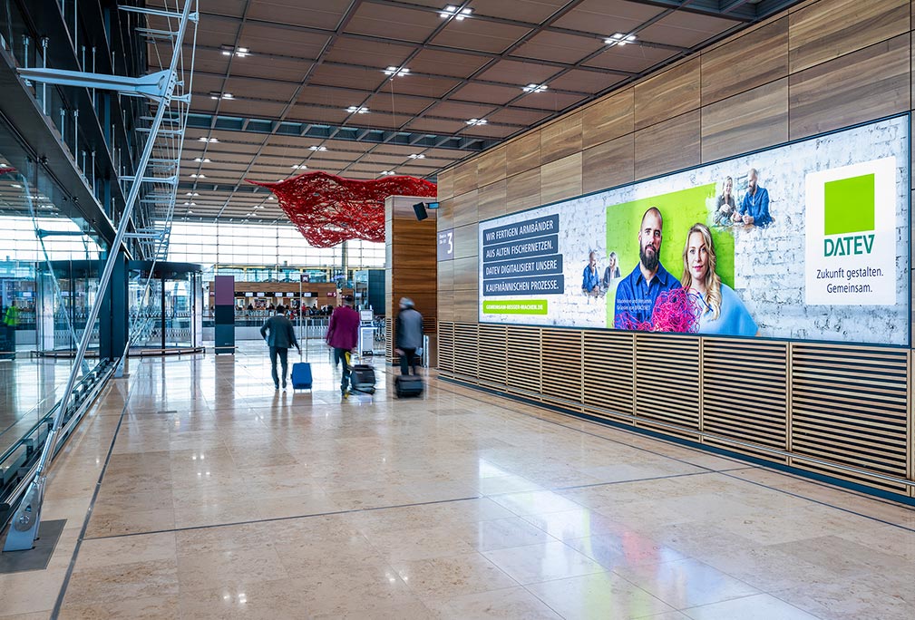 Get yourself talked about – with a total of eight landscapes on the check-in islands. Four are located pointing towards the drop-off/pick-up zone, four more are near airport security checkpoints.